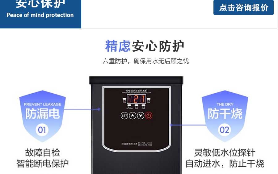 步进式吧台式开水器:出水量大、急速加热,温控功能保温性能好,节能减耗、一天只需1度电;安装方便,使用省心、安心。